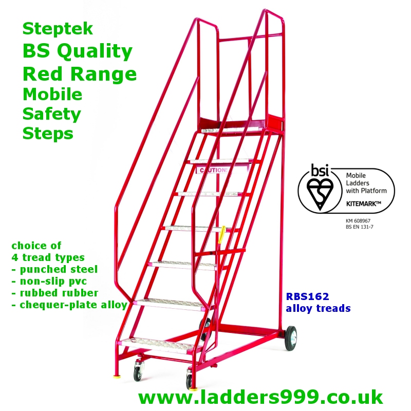 Steptek BS Quality RED Range Mobile Safety Steps BSEN131 Professional - sizes 5-14 treads